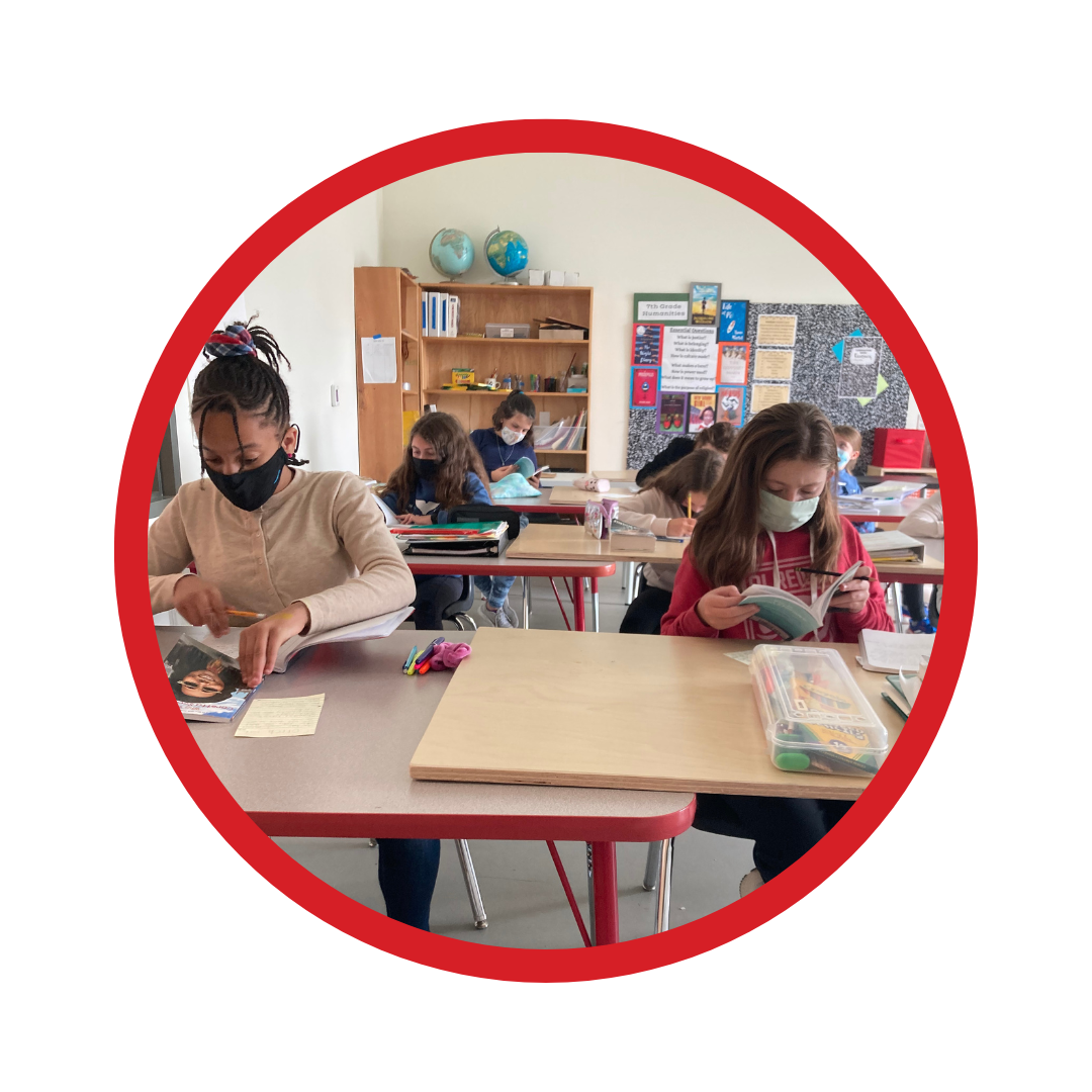 The seventh grade Language Arts class is designed to begin with students asking themselves “who am I?” This theme reverberates in both the literature students read and the writing students produce. The course emphasizes the importance of clear writing and close reading. Students write to convey ideas, using academic writing as well as personal writing to develop critical thinking skills and to discover more about themselves. Using the writing process, students communicate those understandings clearly and creatively while learning and applying grammatical and mechanical rules to their writing. Active reading skills are utilized in all texts as students annotate what they read in order to prepare for frequent discussions. By the end of the course, students begin to ponder where their voices fit into the landscape of literature.
